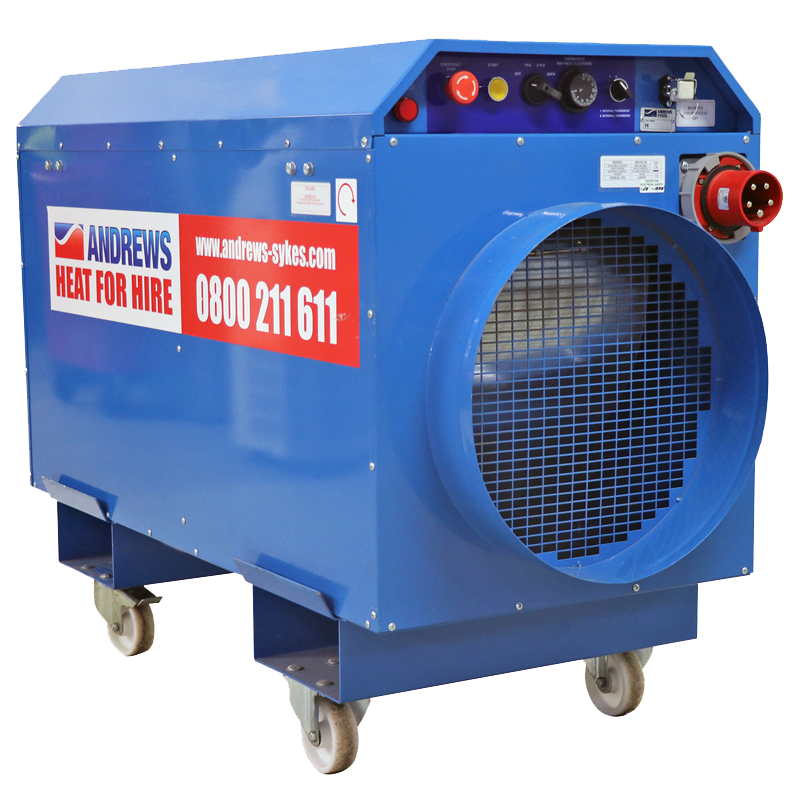 The DE190 is a high capacity electrical heater with three different power settings – 21kW, 42kW and fan only – and is capable of running from a 63amp, 415-volt power supply. It is ideal for heating large industrial spaces of up to 1,200m³ in size. This fully portable fan heater can generate a maximum air flow of 4,500m³/h, underlining its suitability for a broad range of heavy duty environments. The DE190 comes complete with an optional remote thermostat and is an ideal heating source for virtually any setting that requires high capacity fume free warm air. These include manufacturing facilities, building sites and tank drying applications.