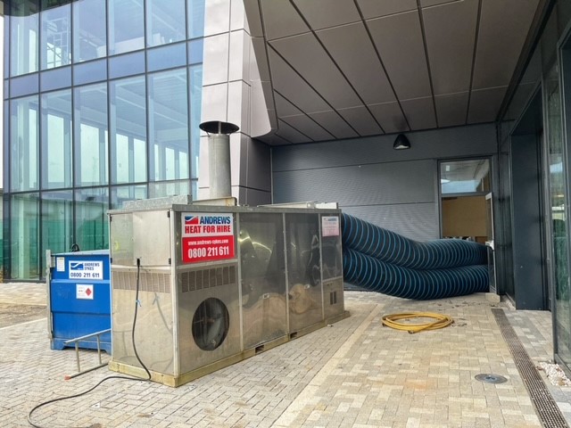 Our clientโs preference was for us to focus attention on one floor at a time and use the same equipment in each instance. An Andrews specialist visited the site beforehand to ascertain the best way forward, with a combined heating and ventilation hire proposed.